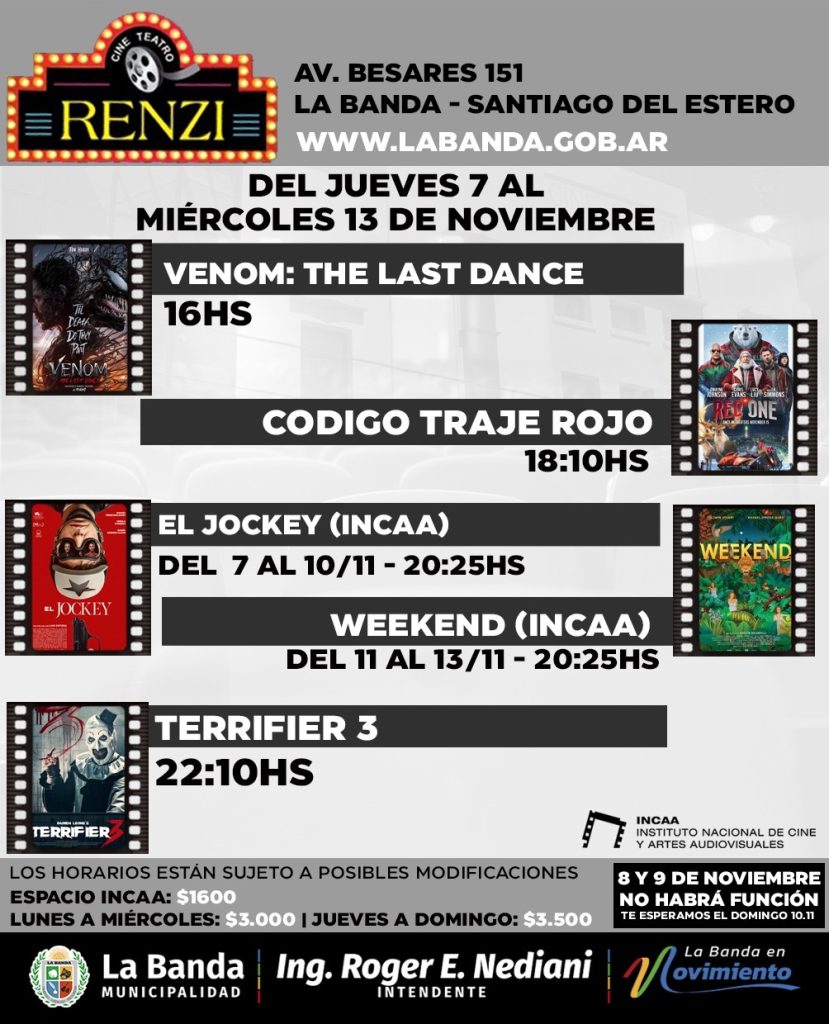 El Cine Teatro Renzi dependiente de la Secretaría de Comunicación de la Municipalidad de La Banda, cambia su cartelera con grandes estrenos internacionales y nacionales en el marco del Espacio INCAA.