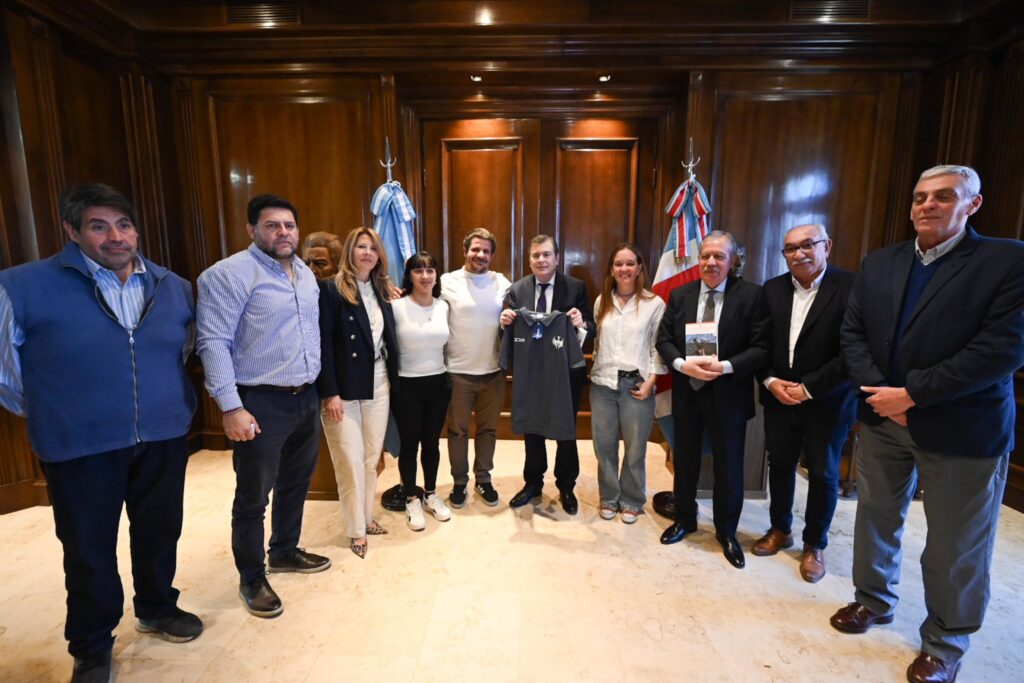 El gobernador Gerardo Zamora, junto al jefe de Gabinete Elías Suárez, recibió a miembros de la Fundación Espartanos, representada por su co fundador, Santiago Cerruti, acompañado por Sofía Olmos y Estefanía Arévalo, y al fundador de la Fundación Rugby Inclusión de Santiago del Estero, Miguel Ángel Torresi, junto a Rogelio Díaz Villalba y Marcelo Díaz.