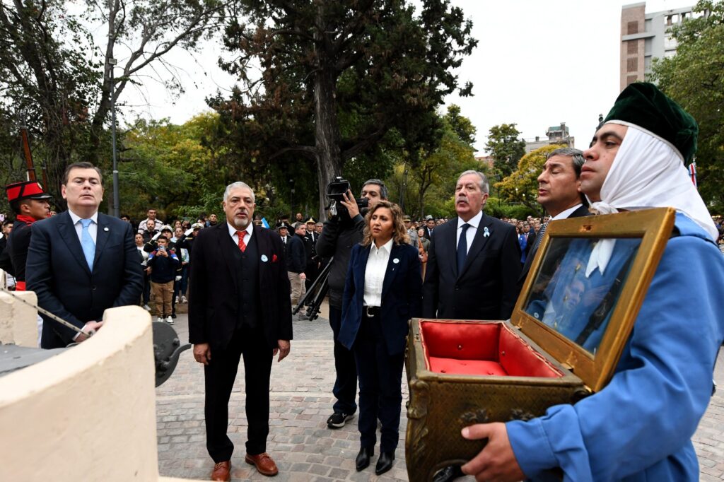 Tras la ceremonia religiosa, se colocó una ofrenda floral en los bustos de Pedro Francisco de Uriarte y de Pedro León Gallo. Luego, el mandatario provincial junto a la senadora y demás autoridades participaron de la tradicional chocolatada, para luego presidir el acto central frente al Centro Cultural del Bicentenario, donde las palabras alusivas estuvieron a cargo del profesor Guillermo Zorribas, quien realizó una reseña del proceso de Declaración de Independencia y expresó: “Esta conmemoración nos invita a asumir una mirada reflexiva sobre el pasado pero asumiendo siempre un compromiso irrenunciable con el futuro, el legado de 1.816 nos exige seguir construyendo una Argentina más justa, más soberana y profundamente federal desde Santiago del Estero renovamos hoy ese compromiso ¡viva la patria!”.