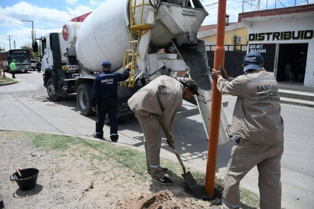 El personal de municipal se encuentra en la etapa de instalación de las columnas para luego continuar con el tendido del cableado pre ensamblado, colocación de los artefactos de iluminación LED y los comandos.