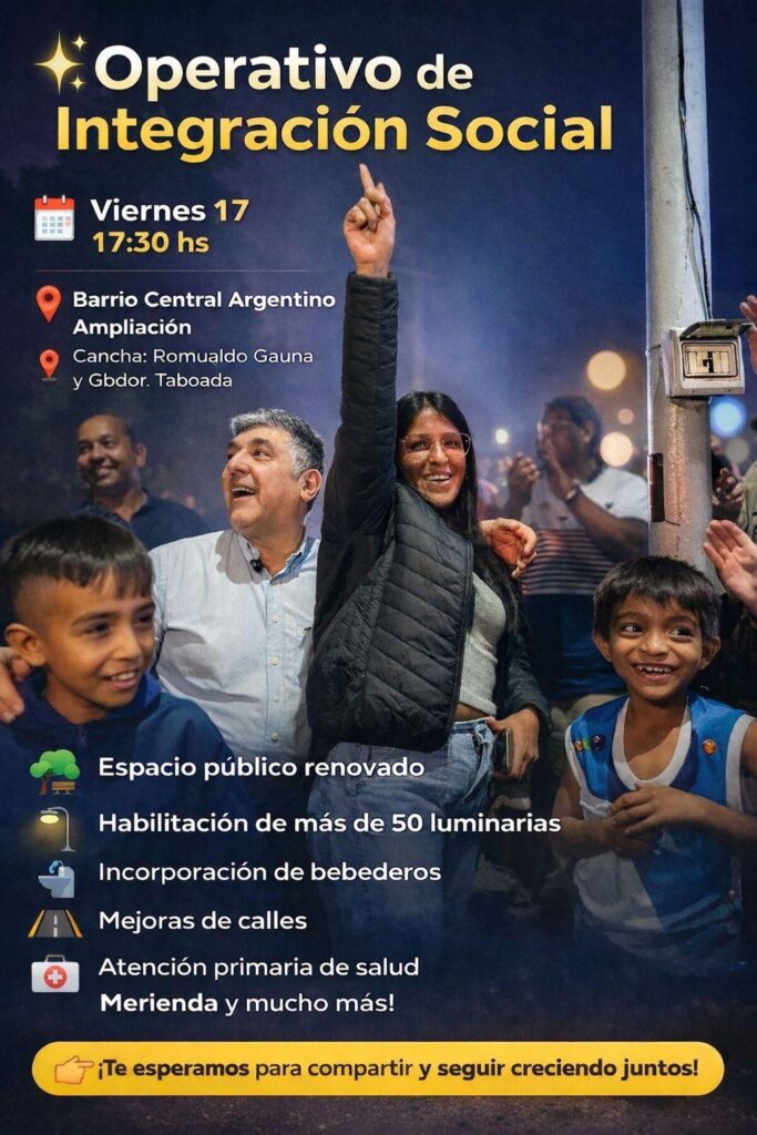 Este viernes se realizará un Operativo de Integración Social en el Barrio Central Argentino Ampliación