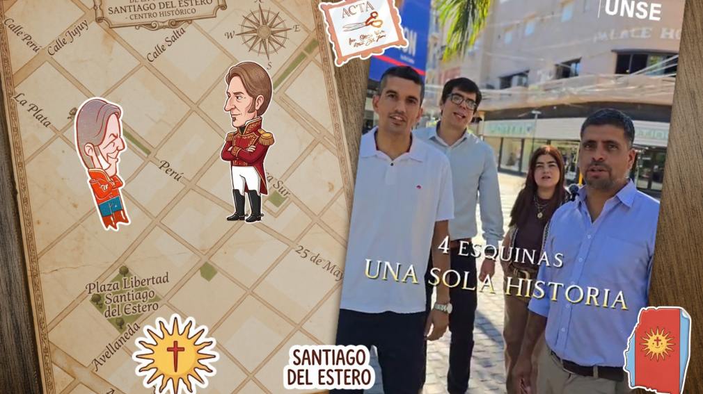 La propuesta, desarrollada desde la Subsecretaría de Comunicación en articulación con el Equipo Historia UNSE, se compone de cuatro reels bajo el eje “cuatro esquinas, una sola historia”, una iniciativa que invita a recorrer distintos puntos emblemáticos de la ciudad capital para reconstruir el proceso histórico que derivó en la Autonomía Provincial.