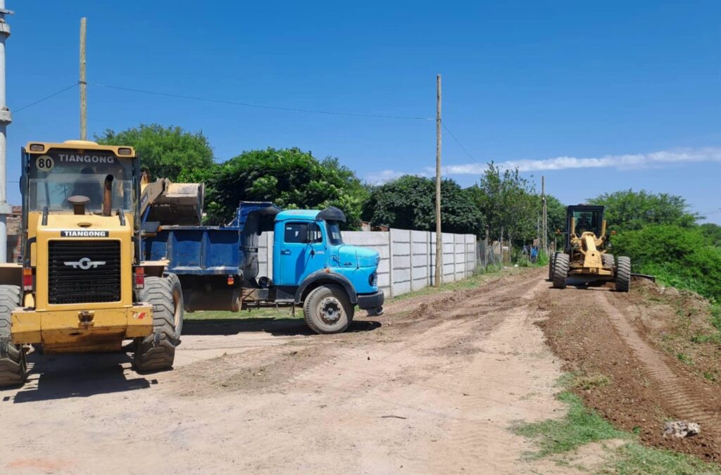 La Dirección de Obras Públicas de la Municipalidad de la Capital avanza con los trabajos de mantenimiento de la red vial del barrio Los Flores ampliación, donde se realizó el perfilado, limpieza y recuperación de base de calle paralela a la colectora del Desagüe Pluvial Sur y Río Dulce.
