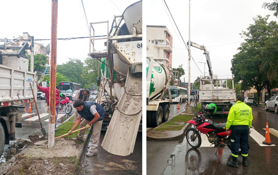 La columna habia sufrido un inclinación al ser impactada por un camión.