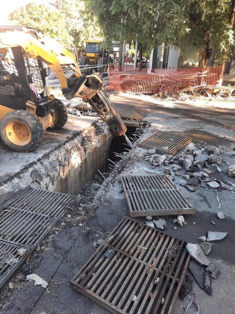 Se realizó la extracción de rejas para reemplazar con viguetas y hormigon armado, quedando los laterales en un ancho de trocha para funcionalidad por descarga pluvial a rejillas.