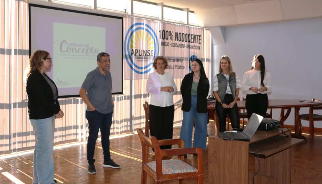 ▪ En la apertura, estuvieron presentes la vicerrectora de la UNSE, Fernanda Mellano; el secretario general de Apunse, Pablo Cejas; la Secretaria de DDHH y Géneros de Apunse, Noelia Achaval y las integrantes del Programa de Géneros UNSE, , Rita Morano, Virginia Palazzi y Mariana Machín. También participaron integrantes de la Comisión Directiva del gremio Apunse.