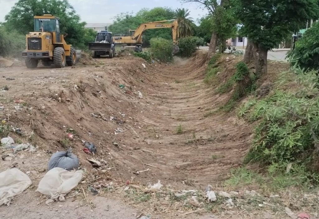 Trabajos de limpieza del desagüe de avenida del Trabajo, entre Solis y 2 de Septiembre