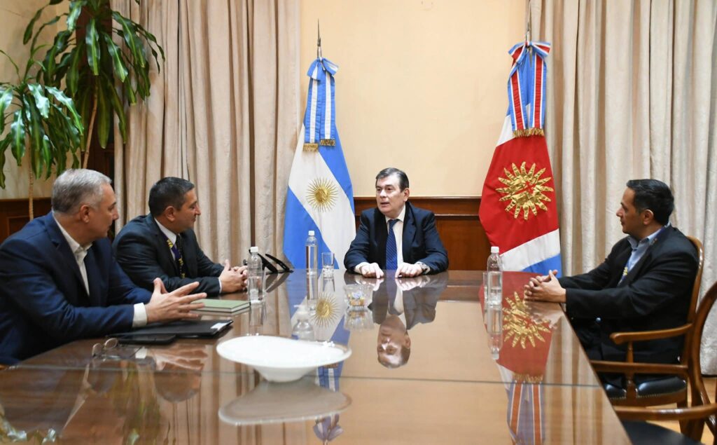 Durante el encuentro, el mandatario provincial recibió al comisario Juan José Bresso, jefe de la unidad, y al principal Cristian Fernando Nieva, segundo jefe, quienes asumieron recientemente sus funciones al frente de esta fuerza de seguridad nacional en la provincia.