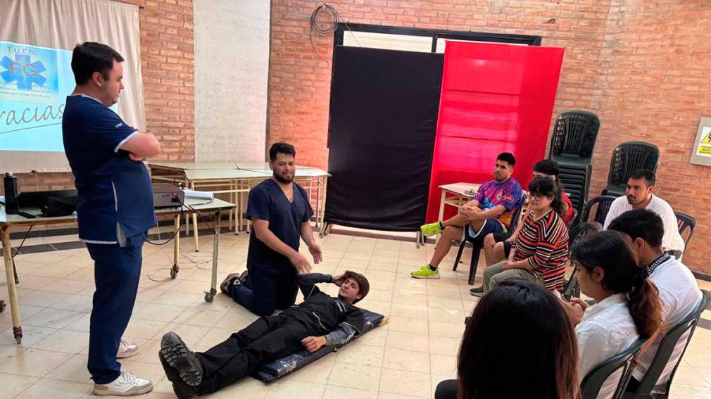 Este viernes, alumnos de la Facultad de Ciencias Médicas de la Universidad Nacional de Santiago del Estero (UNSE) y egresados de la Tecnicatura Universitaria en Emergencias Médicas llevaron adelante una jornada de capacitación sobre primeros auxilios y prevención de riesgos en la cocina, destinada a la comunidad del Hogar de Cristo San Vicente.
