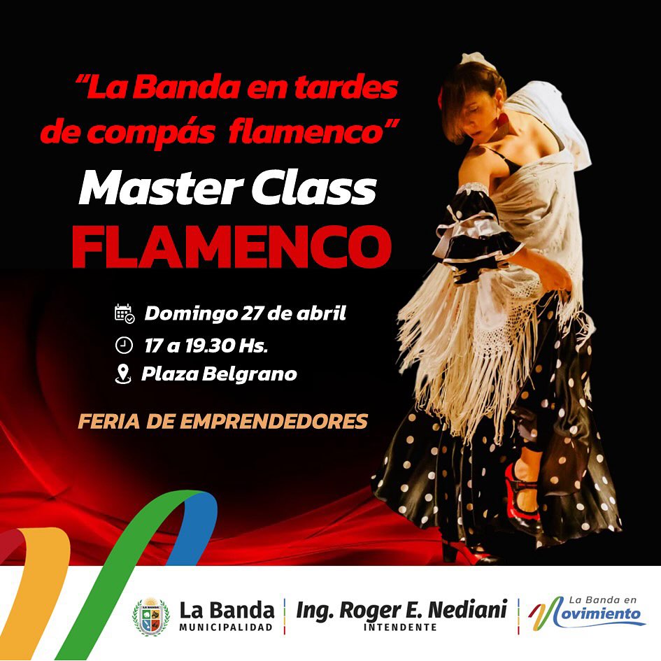 En el marco de los festejos por los 10 años de la escuela de danzas Perfume de Andalucía, la Municipalidad de La Banda invita a toda la comunidad a participar de la actividad “Tardes a compás Flamenco”, una Master Class abierta y gratuita que se realizará el domingo 27 de abril a las 17 en Plaza Belgrano.